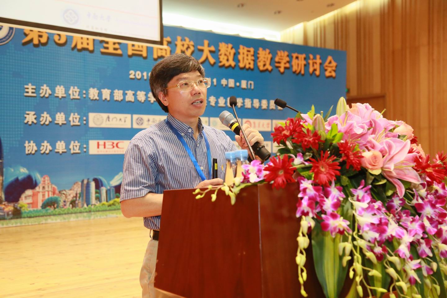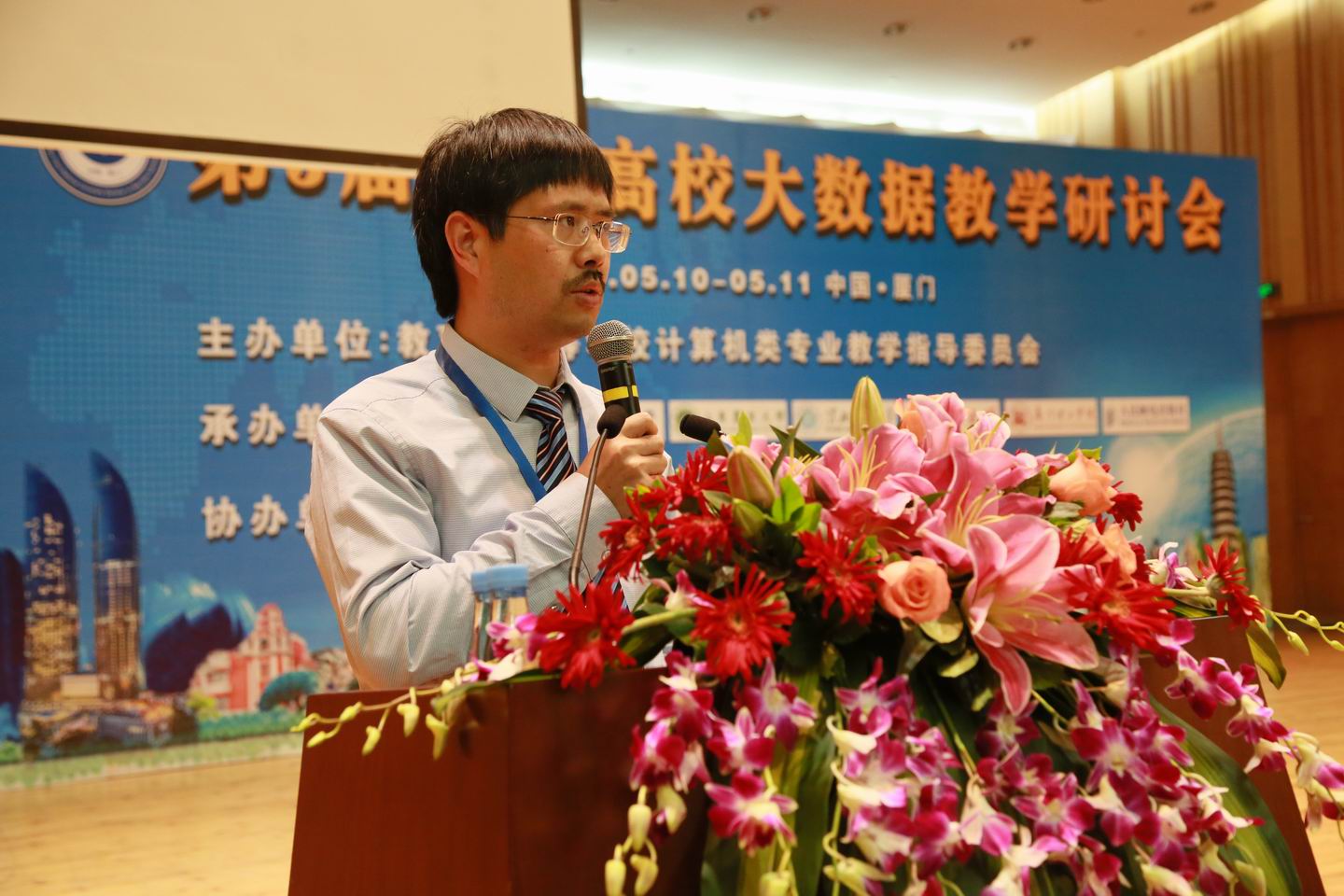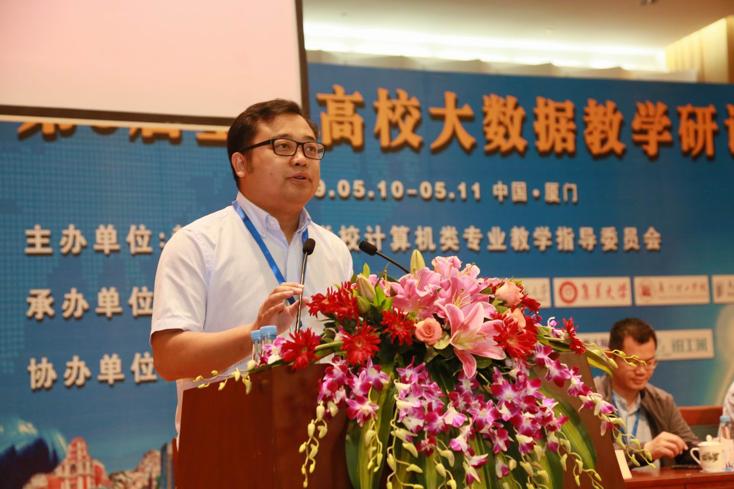 复旦大学汪卫教授结合复旦大学数据科学第二专业建设的实践,分析了数据科学第二专业的知识结构,介绍了复旦大学数据科学专业的课程和教学内容设计方案,并分析了数据科学第二专业课程教学的特点。华东师范大学钱卫宁教授做了题为《华东师范大学数据科学与工程专业建设探索》的报告,介绍了华东师范大学在大数据专业建设过程中已经和正在进行的工作。中南大学是国内首批获得教育部批准设立“数据科学与大数据技术”专业的三所本科高校之一,作为大数据专业建设负责人,中南大学计算机系张祖平教授在报告中介绍了如何针对学校资源配置现状,考虑学生知识结构、能力层次及毕业走向等约束条件,对专业培养方案进行调整完善。中国人民大学朝乐门副教授在分析大数据时代人才培养工作的主要挑战的基础上,结合自己的《数据科学导论》课程及同名MOOC课程的建设经验,分享了关于《数据科学导论》课程建设的几点思考。哈尔滨工业大学石胜飞副教授介绍了如何围绕本科生《大数据分析与挖掘》课程教学,针对本课程教学过程中出现的普遍问题,探索灵活的教学方法,使得不同的学生通过课程的学习,能够基本掌握在大数据的计算环境下,高效地将数据挖掘算法应用于实践中。山东工商学院董付国副教授做了题为《Python程序设计课程教学要点与教学资源建设》的专题分享。厦门大学计算机系林子雨助理教授以自己在厦门大学多年主讲大数据课程的实践经验为基础,分享了自己团队在大数据课程体系建设方面的成果和经验。同时,来自新华三、睿亚训、普开数据等国内知名大数据企业的业界专家,也为大会带来了精彩的报告,分享了业界开发的面向高校的大数据教学产品,以及对高校发展大数据专业的宝贵建议。