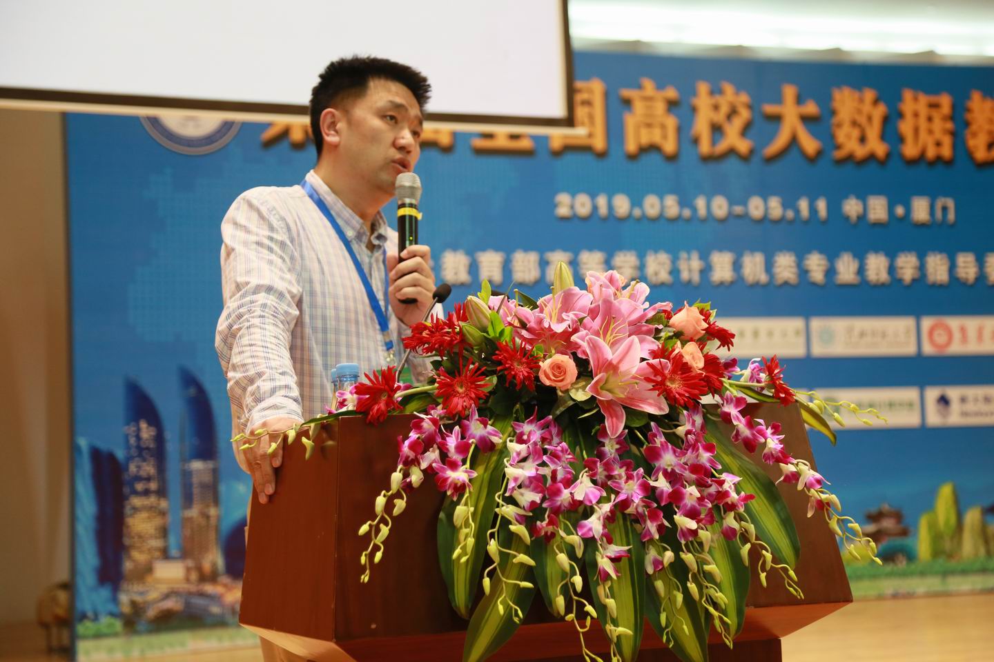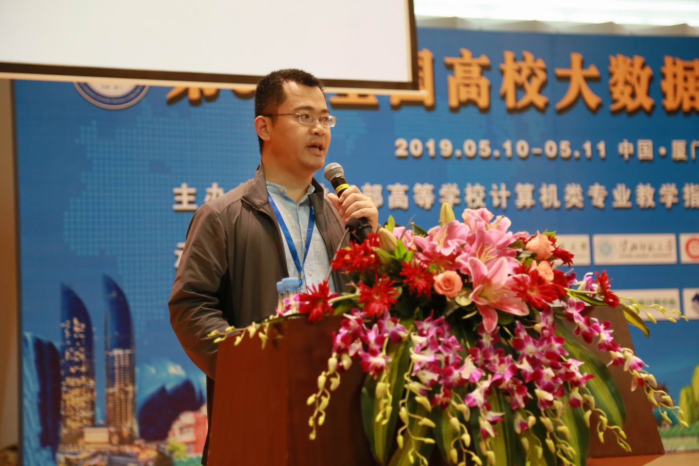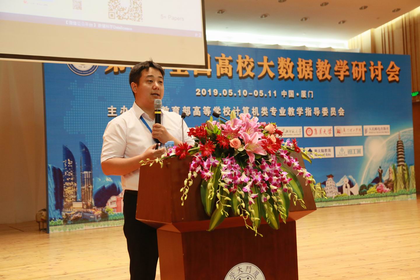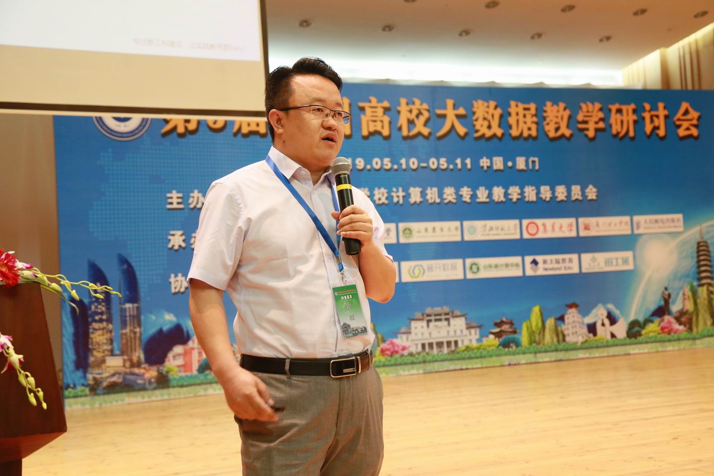 复旦大学汪卫教授结合复旦大学数据科学第二专业建设的实践,分析了数据科学第二专业的知识结构,介绍了复旦大学数据科学专业的课程和教学内容设计方案,并分析了数据科学第二专业课程教学的特点。华东师范大学钱卫宁教授做了题为《华东师范大学数据科学与工程专业建设探索》的报告,介绍了华东师范大学在大数据专业建设过程中已经和正在进行的工作。中南大学是国内首批获得教育部批准设立“数据科学与大数据技术”专业的三所本科高校之一,作为大数据专业建设负责人,中南大学计算机系张祖平教授在报告中介绍了如何针对学校资源配置现状,考虑学生知识结构、能力层次及毕业走向等约束条件,对专业培养方案进行调整完善。中国人民大学朝乐门副教授在分析大数据时代人才培养工作的主要挑战的基础上,结合自己的《数据科学导论》课程及同名MOOC课程的建设经验,分享了关于《数据科学导论》课程建设的几点思考。哈尔滨工业大学石胜飞副教授介绍了如何围绕本科生《大数据分析与挖掘》课程教学,针对本课程教学过程中出现的普遍问题,探索灵活的教学方法,使得不同的学生通过课程的学习,能够基本掌握在大数据的计算环境下,高效地将数据挖掘算法应用于实践中。山东工商学院董付国副教授做了题为《Python程序设计课程教学要点与教学资源建设》的专题分享。厦门大学计算机系林子雨助理教授以自己在厦门大学多年主讲大数据课程的实践经验为基础,分享了自己团队在大数据课程体系建设方面的成果和经验。同时,来自新华三、睿亚训、普开数据等国内知名大数据企业的业界专家,也为大会带来了精彩的报告,分享了业界开发的面向高校的大数据教学产品,以及对高校发展大数据专业的宝贵建议。