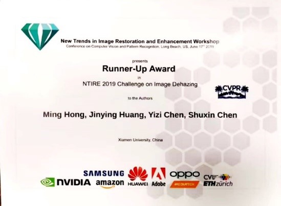 2019年6月16日,IEEE计算机视觉与模式识别会议(Conference on Computer Vision and Pattern Recognition 2019,CVPR 2019)在美国长滩顺利召开。该会议与 ECCV、ICCV 共称为计算机视觉领域三大顶级学术会议,9227位相关领域专家、学者参会并交流研究成果。同时,CVPR 2019 举办了多项竞赛,来自世界各地的参赛队伍参加了这些比赛,高手如林,竞争非常激烈。厦门大学计算机系曲延云教授和李翠华教授指导的两支队伍参加了NTIRE 2019挑战赛中的“图像去雾”竞赛和UG2+ 挑战赛Track 2 的 “雾霾场景下的(半)监督目标检测” 竞赛,并分别获得Runner Up奖。