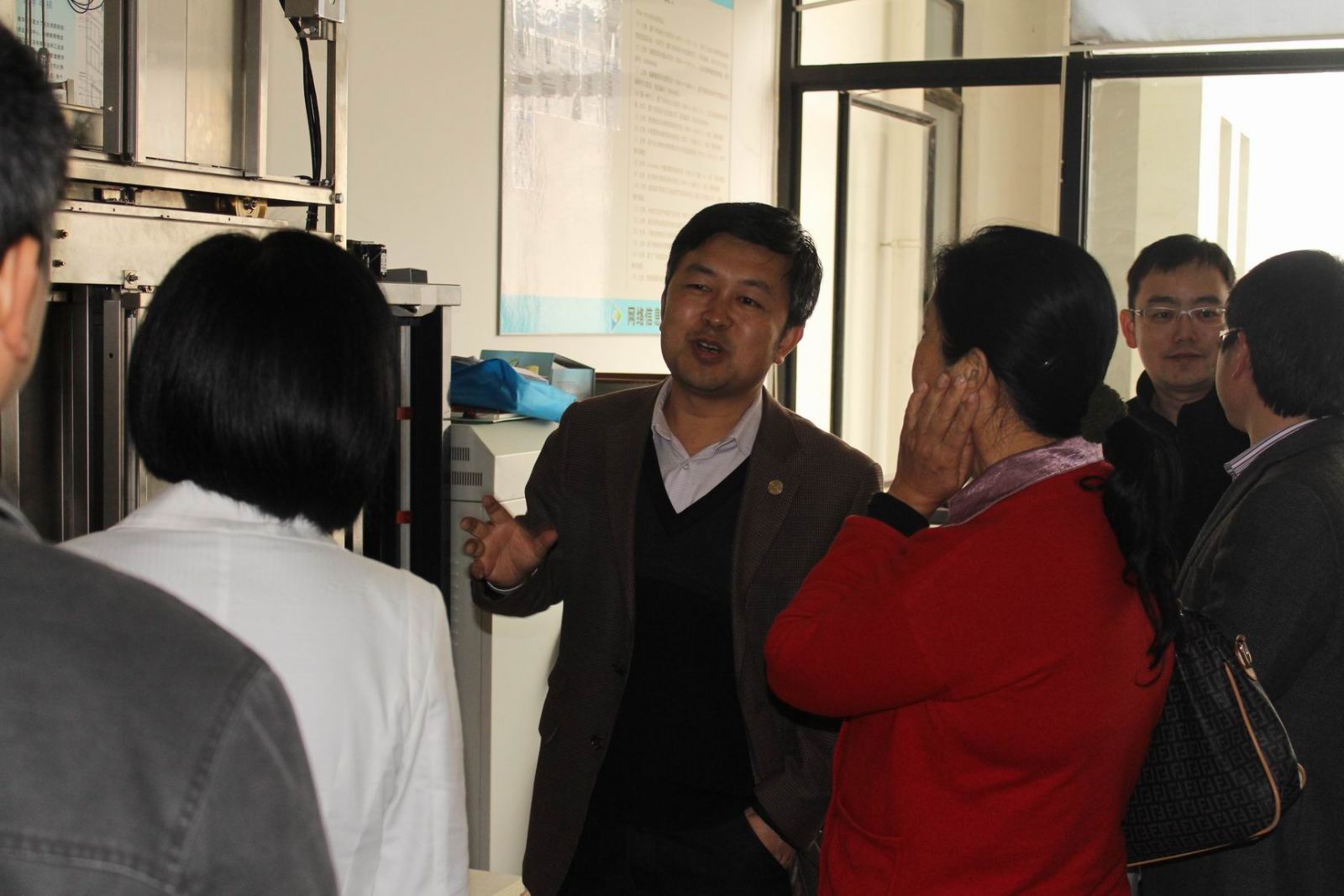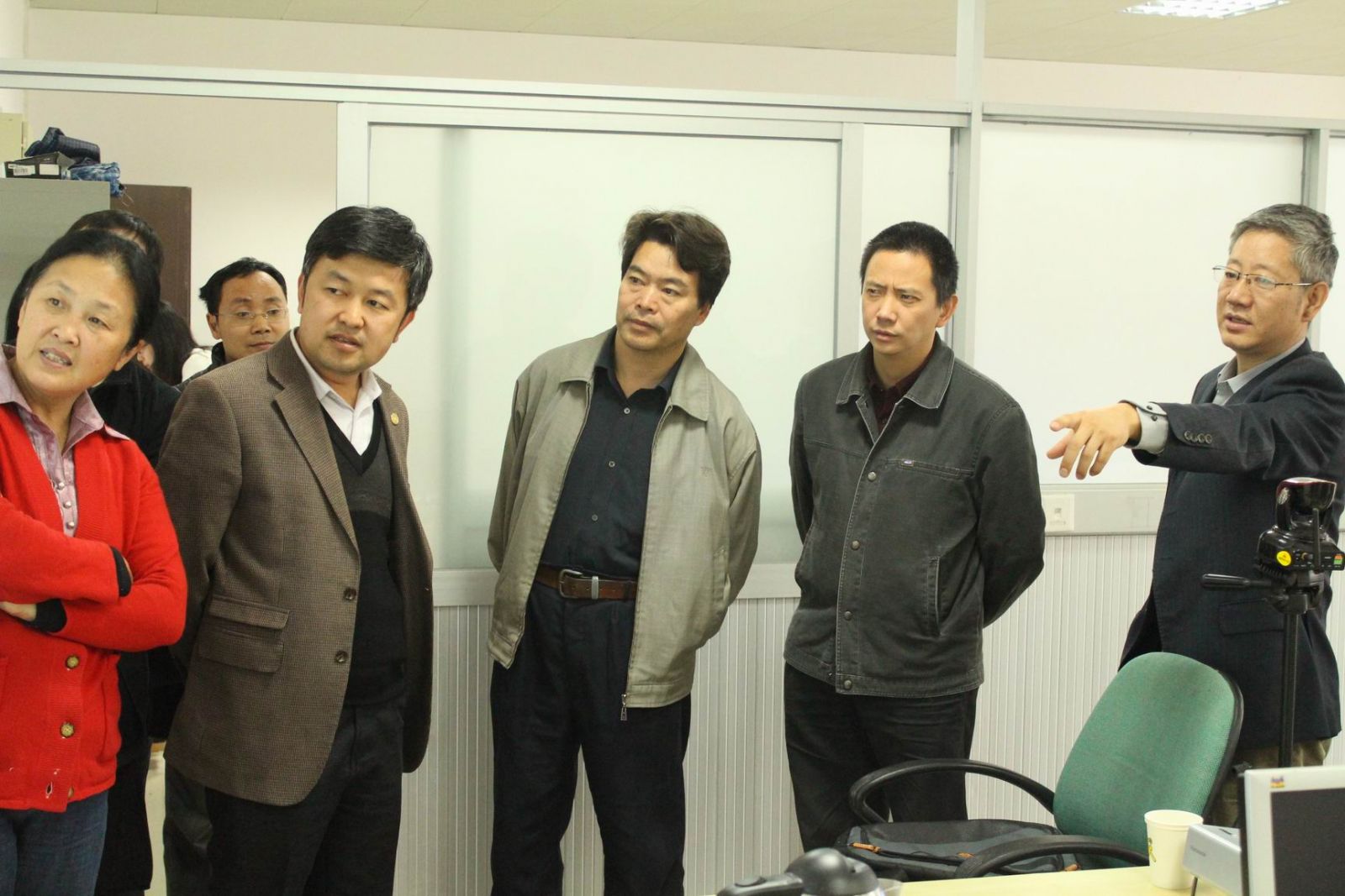 图 雷蕴奇主任向进行实地考察的专家组成员介绍实验室研究内容(摄影:林子雨)