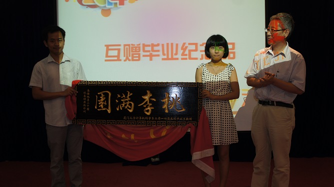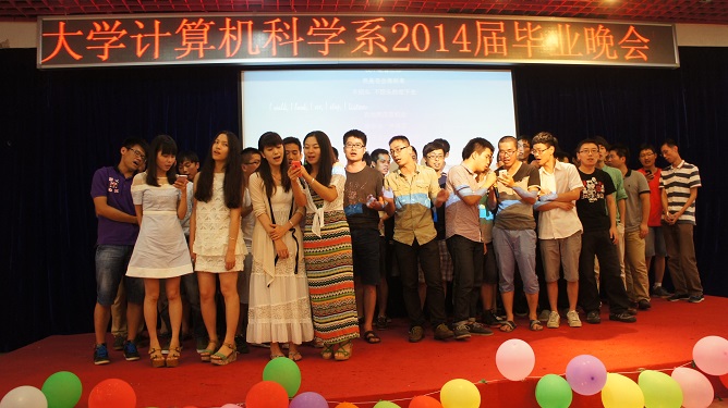 晚会以一段感人的大学生活微型纪录片作为开场,将同学和老师带入了记忆的漩涡。随后,14届本科生陈国诚和梁学万献唱了《海阔天空》、《情人》,用情的歌声表达了他们对母校的万般不舍,最后的拥抱谢幕更是兄弟情谊的体现。12级和13级的学妹们带来了《一个像夏天一个像秋天》和《我只在乎你》,表达了对学长学姐的美好祝福。紧接着,进行优秀毕业生设计奖的颁奖环节。本届优秀毕业设计奖的获得者们纷纷上台,从导师手中接过属于自己的荣誉证书,自信满满。计算机科学系的老师们为每位毕业生准备了精心挑选的毕业纪念品,并献上了深情的寄语,学子们也回赠了精心准备的牌匾,“桃李满园”四个字道出了他们内心对老师们多年栽培的无限感恩。