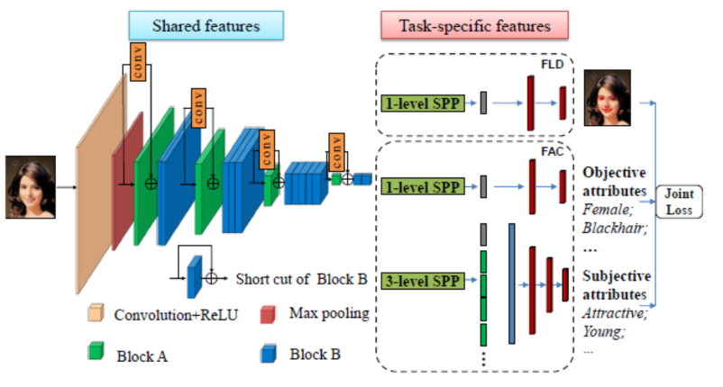 (2)由计算机系硕士研究生毛龙彪完成的论文“Deep Multi-task Multi-label CNN for Effective Facial Attribute Classification”被情感计算领域国际权威期刊IEEE Trans. on Affective Computing(JCR2区,影响因子6.288)接收。该论文延续了课题组在人脸属性识别领域的领先优势,利用多任务学习将人脸属性识别任务与人脸特征点识别任务有机融合,通过发掘多任务之间和多属性标签之间的相关性,有效解决多属性标签识别存在的收敛速度不同的问题。所提算法能有效缓解人脸属性标签不平衡问题并有效提升主观困难属性识别准确率。该论文由厦门大学计算机系严严副教授、王菡子教授以及英国伦敦大学学院的薛景浩副教授共同指导完成。