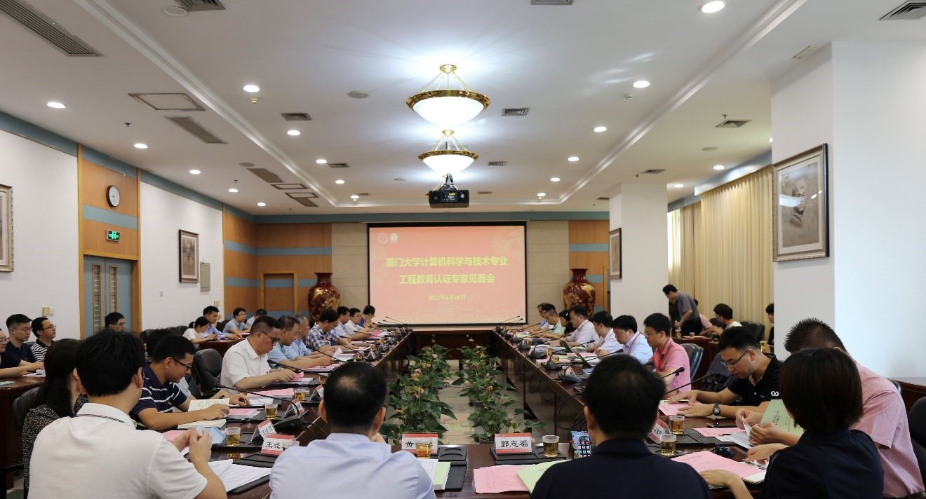 6月10日上午,我校与专家组见面会在颂恩楼215会议室举行。厦门大学校长助理张建霖教授、教务处处长、现代教育技术与实践训练中心主任计国君教授、校招生办、学生工作部(处)等职能部门负责人、信息学院党政班子、计算机科学与技术系党政班子以及教师代表参加会议。会上,张建霖校长助理代表学校热情欢迎考查专家组的到来。他表示,参加工程教育专业认证是推动教育教学改革、提升人才培养质量的重要抓手,请专家组多提出宝贵的意见和建议,多给与指导,推动我校计算机科学与技术专业更快更好发展。计国君处长从厦门大学基本情况、本科生教育两大方面向专家组详细介绍了我校在办校资源、人才培养、教育教学等方面的突出优势和特色。见面会第二阶段,考查组组长王宽全教授介绍了考查目的、任务和要求。计算机科学与技术系主任王菡子教授介绍计算机科学与技术专业的建设情况。之后,有关教师、职能部门负责人认真回答了专家组的提问。