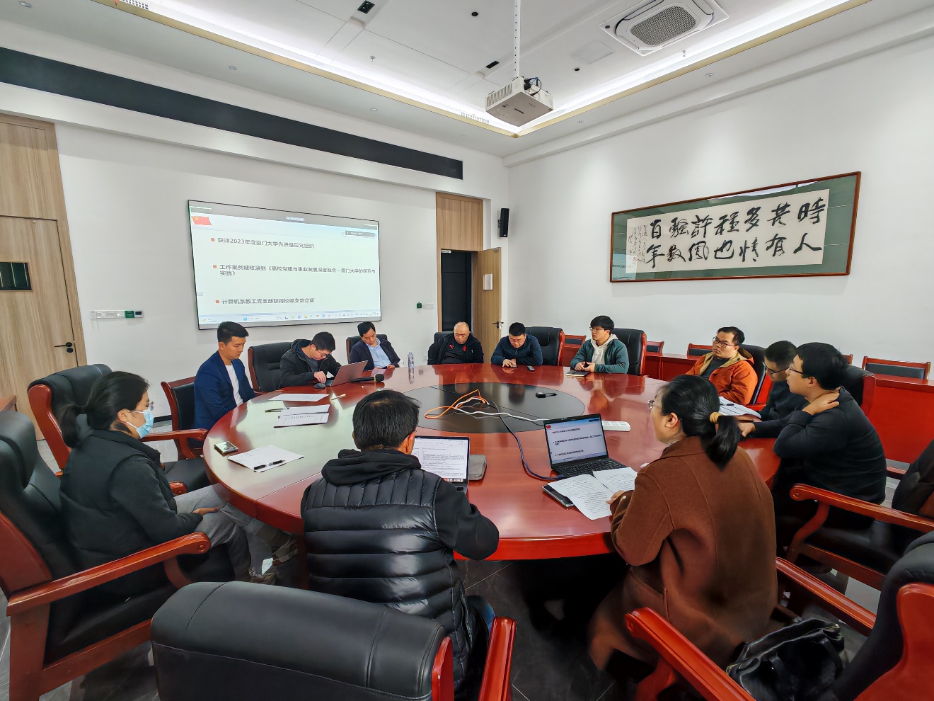 2024年2月28日下午,计算机科学与技术系教工党支部在翔安西部片区3号楼3301会议室召开专题组织生活会和民主评议党员大会,会议由支部书记曲延云同志主持。