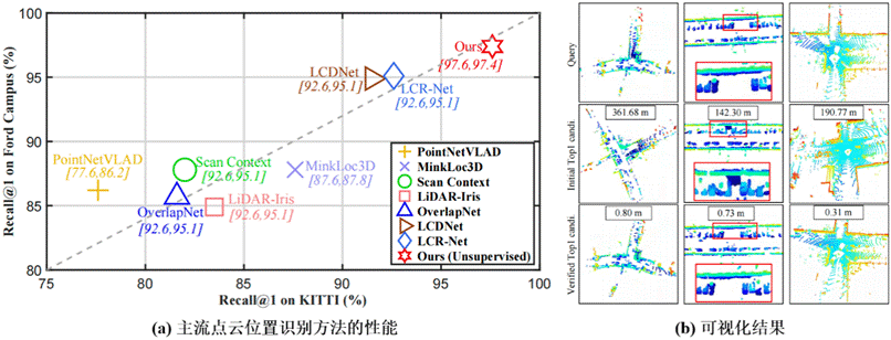 针对点云定位中位姿标签获取困难的问题,提出一种无监督的激光雷达点云位置识别框架。该方法通过深入挖掘点云序列蕴含的时空关联性构建自监督信号,并设计联合学习局部与全局特征的网络架构,有效抑制误匹配并精准识别历史场景点云。进一步地,提出一种鲁棒的局部参考坐标系动态构建技术,使其能够自适应复杂环境变化,显著提升位置识别的准确性与环境适应性。